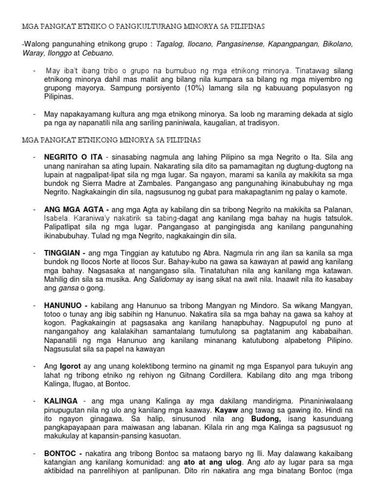 Ipaliwanag ang pagkakaiba ng Lahi sa Pangkat-etniko. Mula hilaga hanggang timog ang pinakamarami sa mga pangkat na ito ay ang mga Ilocano Pangasinense Tagalog Kapampangan Bicolano at Bisaya. Tula tungkol sa mahahalagang pangyayari sa kabihasnang minoan.